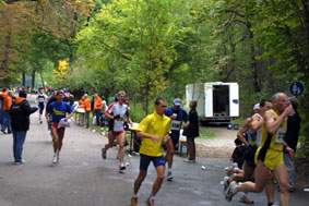 betreute wieder die Erfrischungs - Stelle  Km 32,5 im Englischen Garten. Unter diesem Riesenteilnehmerfeld auch drei Aktive Läufer der LG Passau. Weit vorne, mit einer ausgezeichneten Leistung dabei,