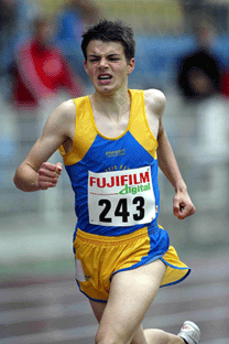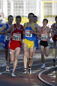 1500 m Vorlauf der männlichen Jugend B: Florian Kapfer ist nach langsamen Rennbeginn rechtzeitig vor dem entscheidenden Endspurt in richtige Position gelaufen und absolviert eine sehr starke letzte Runde. Damit qualifiziert er sich mit